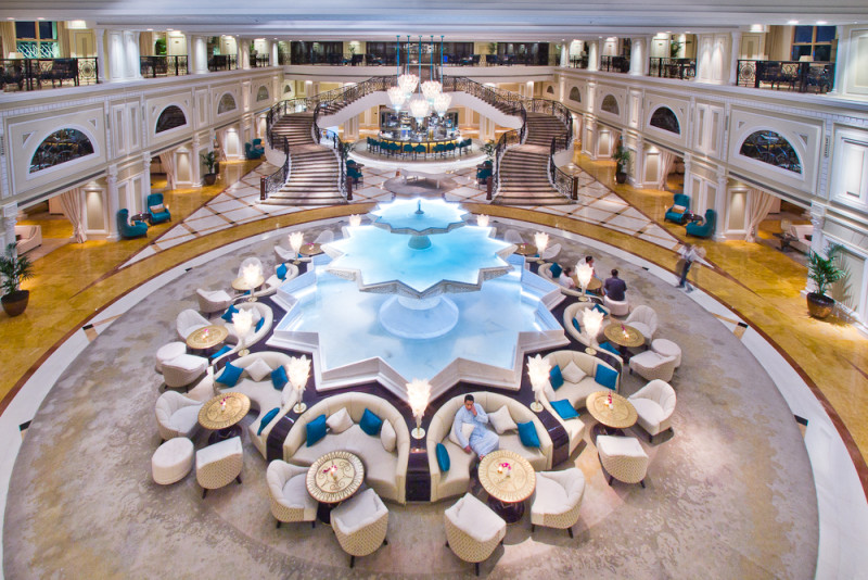 Direkt rechts daneben liegt die Peacock Alley - eine typische Lounge, die in allen Waldorf Astorias der Welt gefunden werden kann. Ein riesiger Springbrunnen soll hier für Diskretion zwischen den einzelnen Sofa-Nischen sorgen, da Gespräche der Sitznachbarn im Rauschen des Wassers untergehen.